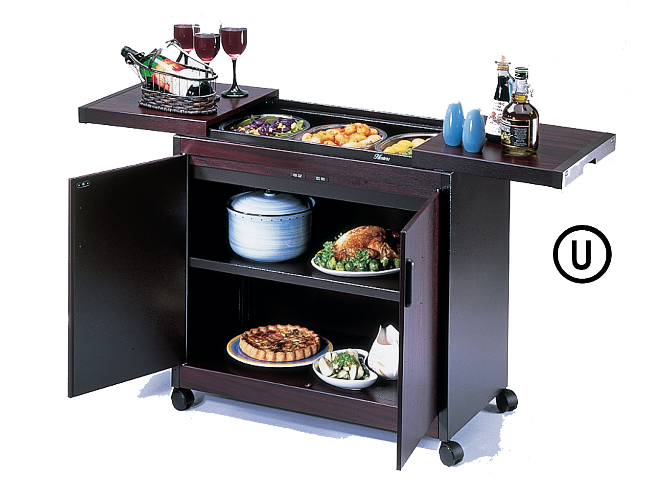 Three heated shelves provide plenty of space for warming 6 to 9 platters of food (depending on the size of the platter)